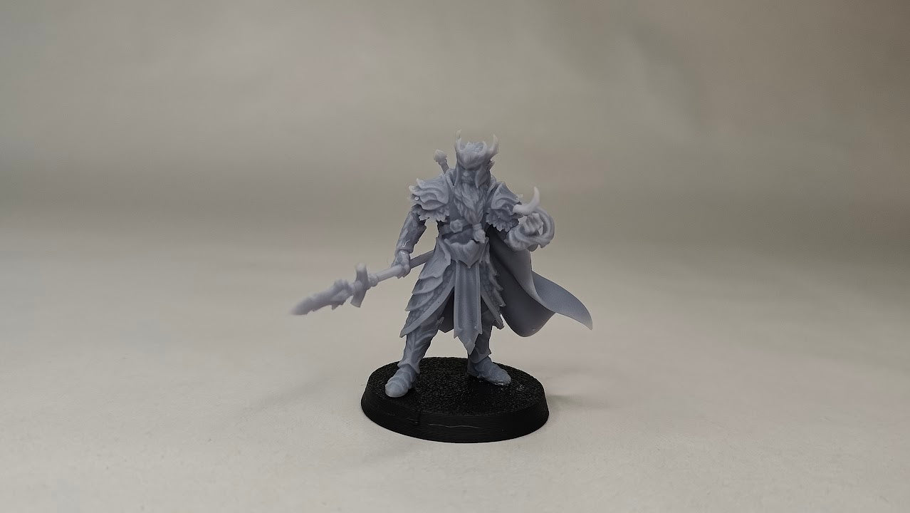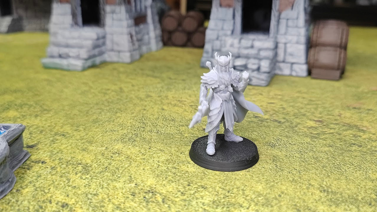 Hans rustning er formet som skovens bark, grene og blade, smedet efter naturens egne linjer. Kappen strømmer bag ham som en dybgrøn flod, og kronen, vævet af træets levende fibre, markerer ham som skovens udvalgte. Uanset hvilken udgave man vælger, står han som den perfekte indbegrebet af Evergreen Elves’ adel og urkraft.